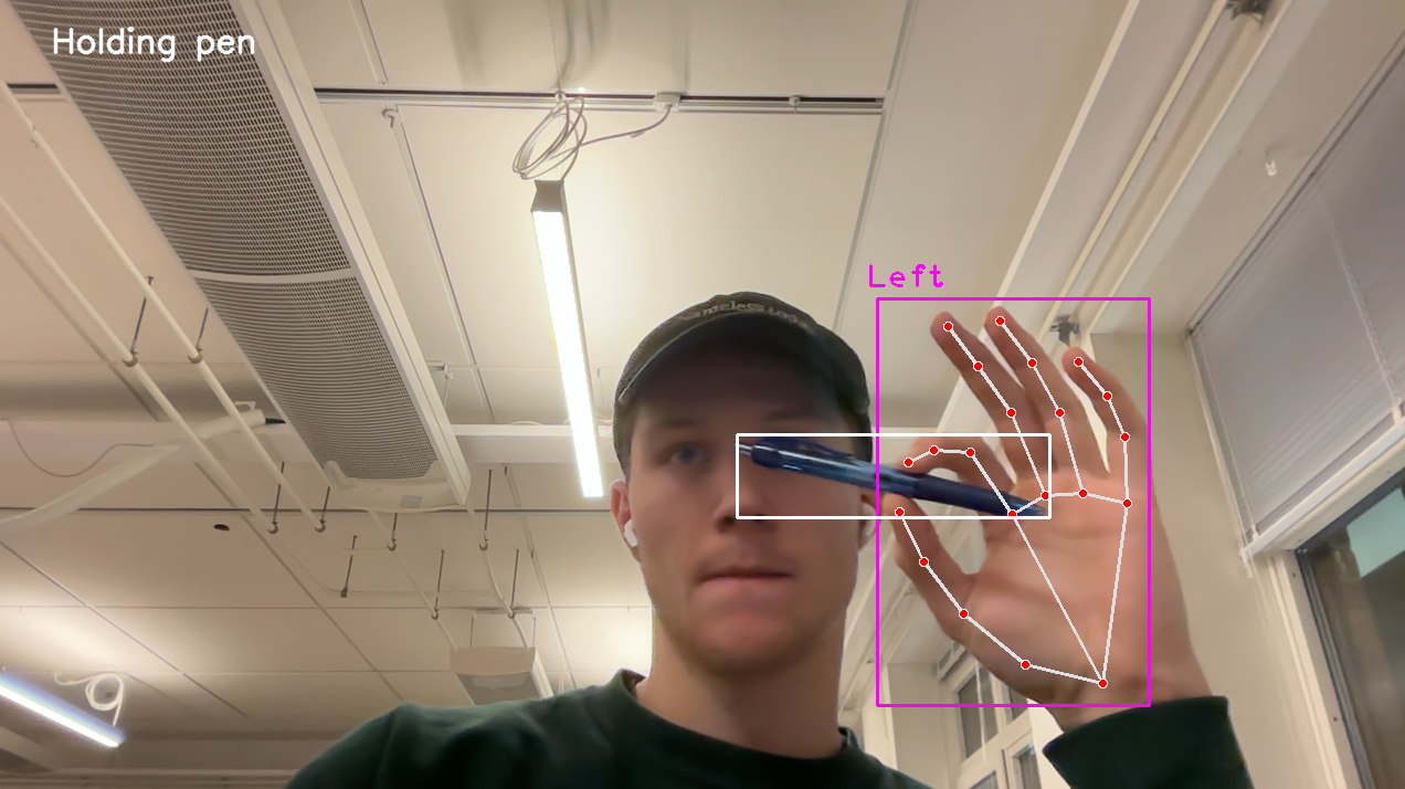 Hand overlapping with input prompts to look for "a photo of a pen".